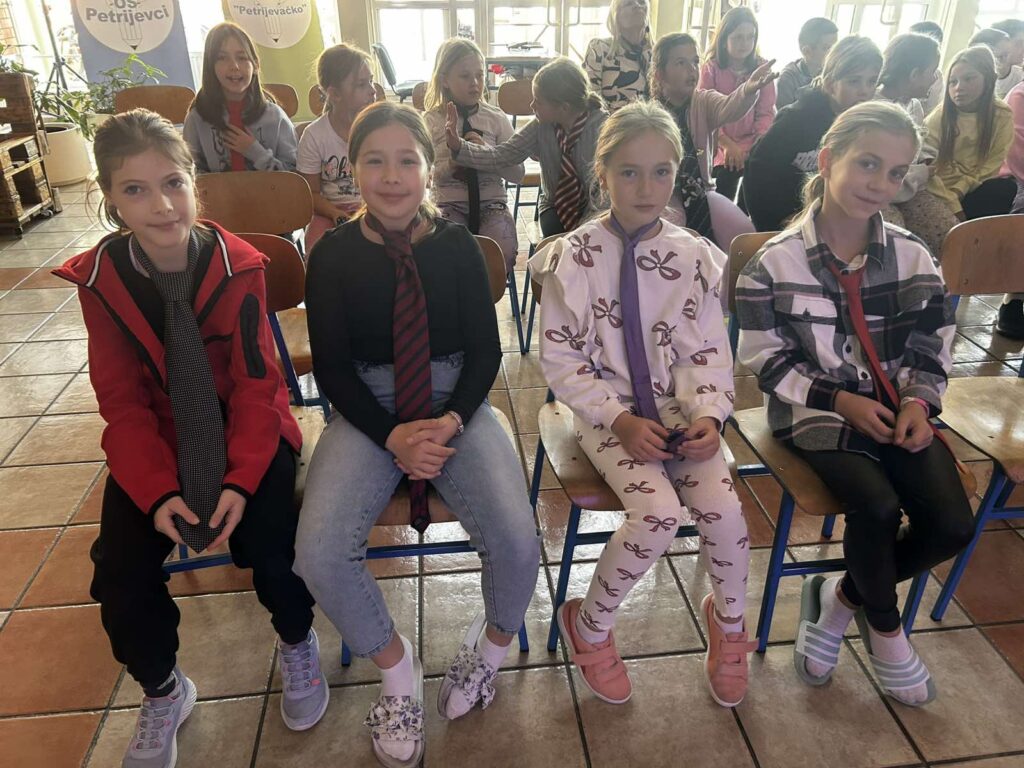 Program smo započeli člankom o kravati iz Hrvatske enciklopedije. Nakon toga su nas učenici trećega razreda upoznali upravo s Danom kravate. Povijest nastanka kravate saznali smo iz ulomka Priče o kravati Božidara Prosenjaka. Pažljivo smo odgledali animirani film Kravata Croatica Borisa Kolara s glazbom Arsena Dedića. Učenici su bili pozvani da s kravatom u školu donesu i kratku obiteljsku priču o kravati, ali se nitko nije odvažio da je ispriča. Zato su hrabri bili Iris, David, Ela Marija i Sara koji su se natjecali u brzini vezivanja kravate iako su to tek nedavno naučili. Svi su bili spretni, ali su Ela Marija i David bili najbrži! Čestitamo im! Ovu smo svečanost kravate završili zajedničkim fotografiranjem i obećanjem da ćemo ovaj lijepi dan obilježavati i ubuduće!