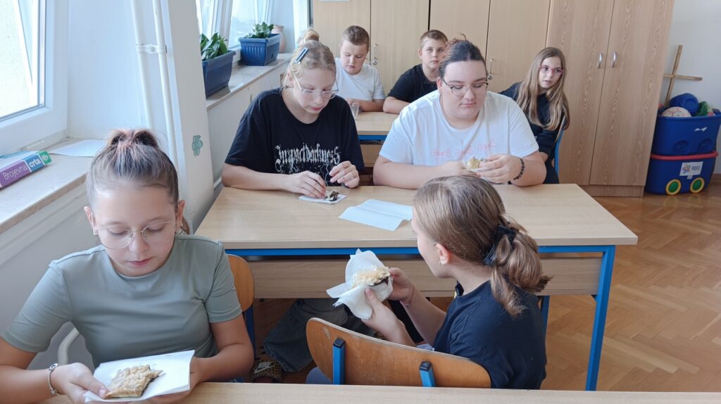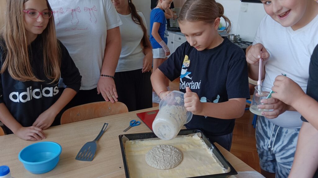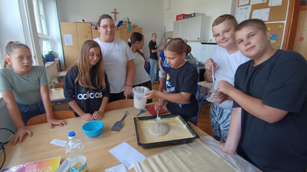 Prvo smo se okušali u pripremi međimurske gibanice koja je dobila najbolje ocjene od nas samih do svih ostalih kušača – djelatnika koji su se zatekli u školi.